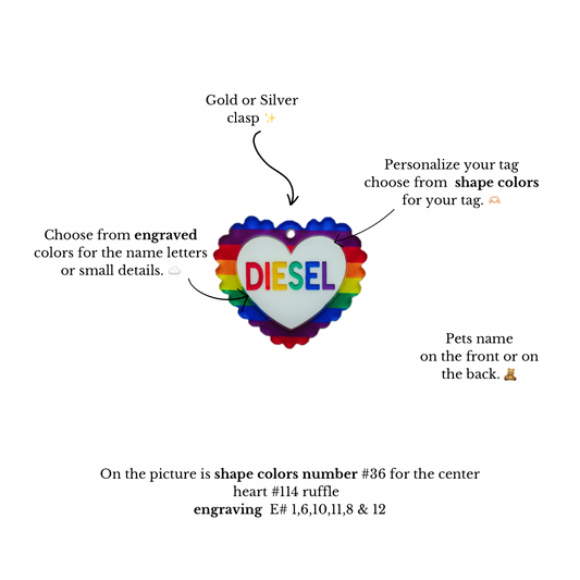Ruffle heart rainbow letters